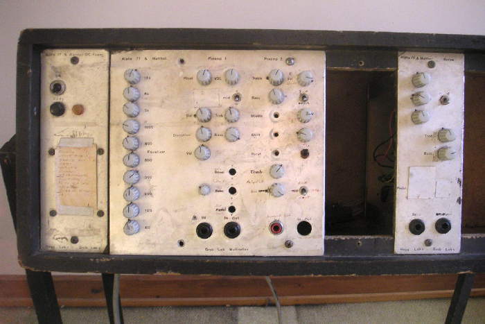 Needless to say that the whole construction was in constant change and as I improved my playing and found my picking styles, I rewired the amp and replaced more and more of Hoggs designs. The progressive rock band LIZARD was famous for these guitar sounds. I kept changing them a lot on stage and wished nothing more than to program them - impossible at that time due to noise, mainly.