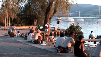Há anos, no Greifensee, um lago perto de Zürich, nos domingos bonitos do verão, surge a figura com a guitarra azul e a caixa mágica para reverenciar o Sol. Tem um público que vem atraído pelo sol, outro pela música, e um terceiro passeando, parando...: