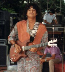 Bahias Luis Caldas with his Kramer customized with PARADIS pickups and built in POLYDISTORTION.